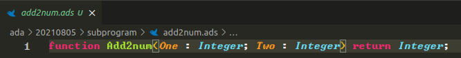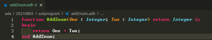 Ada에서 함수 선언은 function 키워드를 사용하면 됩니다.