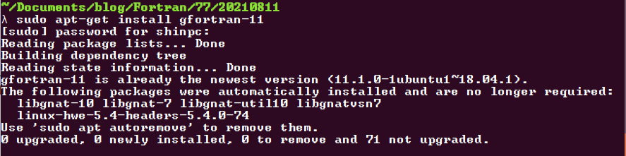 sudo apt-get install gfortran-7위의 하나의 명령어는 11버전 설치를 뜻하고, 밑에 두 명령어는 7버전 설치를 의미합니다.