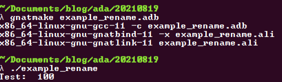 end example_rename;이렇게 작성을 하면, a2i함수를 사용하면, Integer'Image 함수와 같으면서, 짧게 사용을 할 수 있습니다.